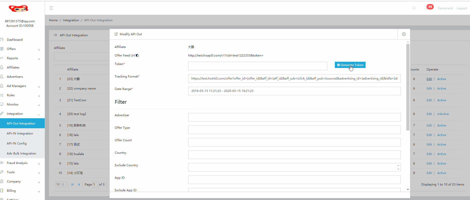 A: You can set affiliate permissions for api, offer obtained through the api default Inherit, it will be promoted by affiliate set here. Click the plus sign to the right to add multiple affiliate information.