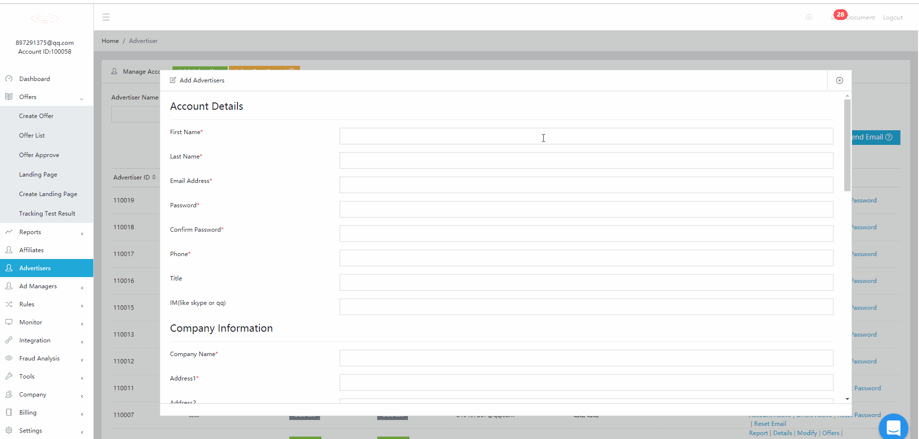A: We also have a corresponding advertiser's system. If your advertiser needs to log in to view the data, they can log in with email password.