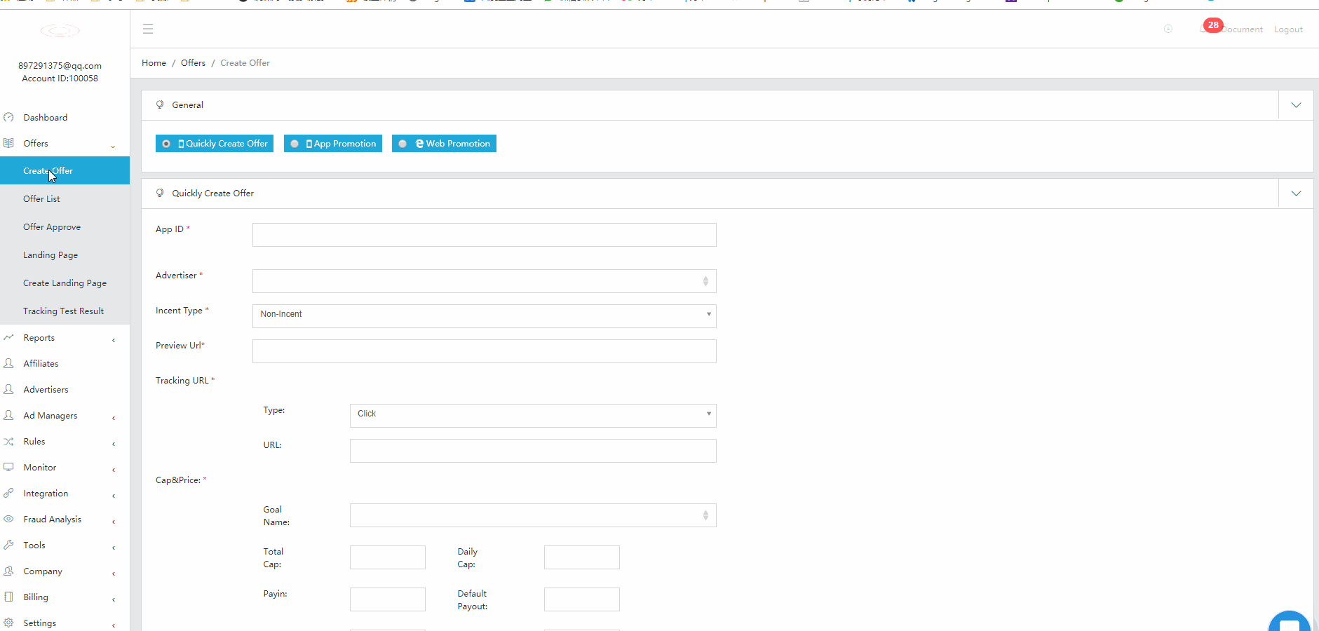 A:We have three ways to create a list: Quickly create offer, App Promotion, Web Promotion. The third one can create a cpa offer.
